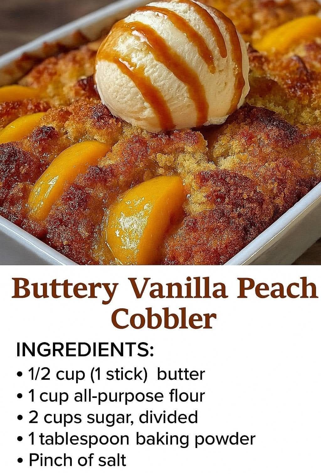 Here’s a rich and comforting recipe for Buttery Vanilla Peach Cobbler—perfectly sweet, fruity, and buttery with a golden crust.