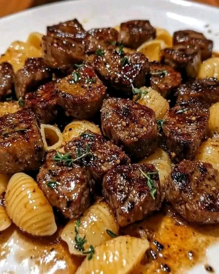 🥩 Garlic Butter Steak Bites with Parmesan Cream Sauce