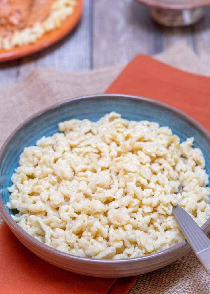 • Nokedli is the Hungarian version of spaetzle — soft and slightly chewy.