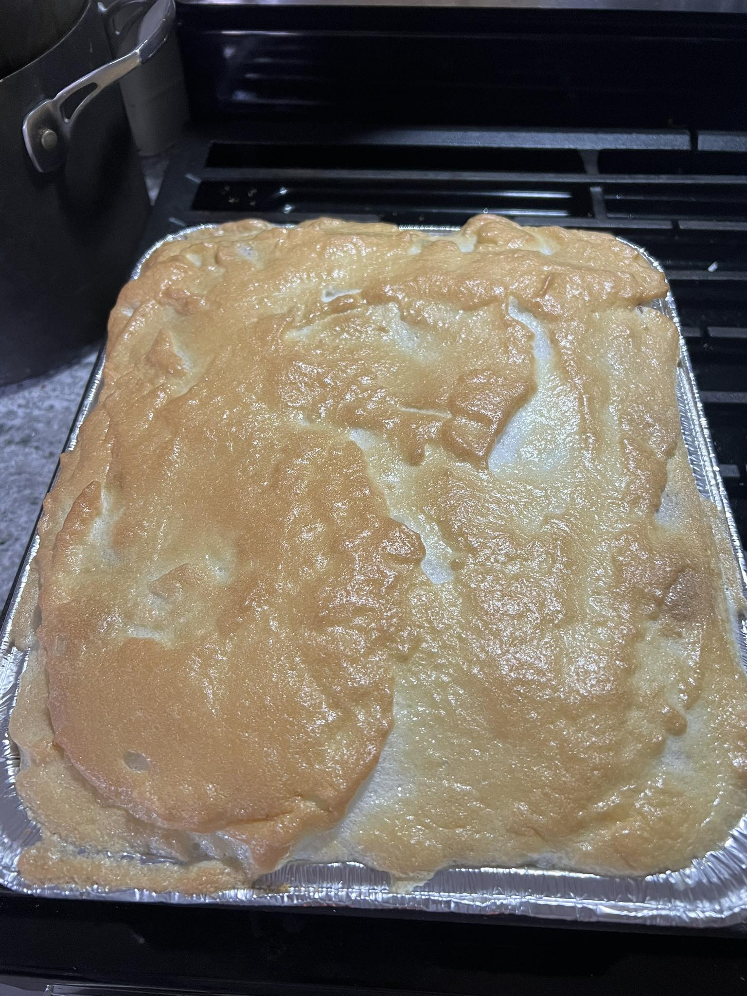 3. Spread over assembled pudding, sealing edges.